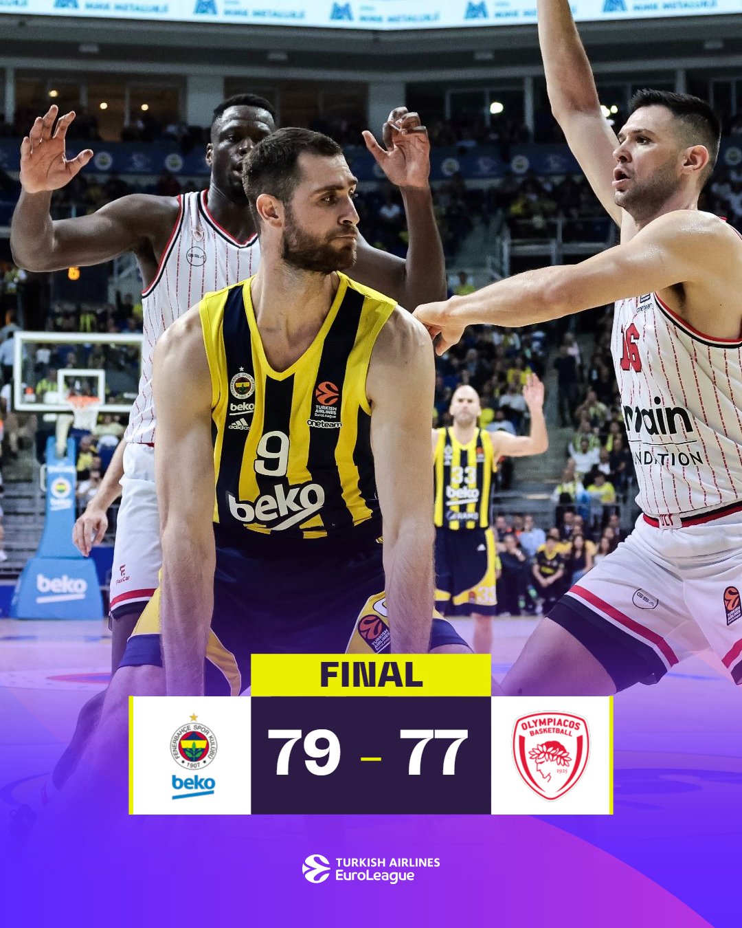 Ο Ολυμπιακός παίζοντας καταπληκτικό μπάσκετ στο δεύτερο ημίχρονο διεκδίκησε τη νίκη γυρίζοντας από το -16, αλλά στο τελευταίο δίλεπτο ο Γιώργος Παπαγιάννης του στέρησε τη χαρά της νίκης και η Φενέρμπαχτσε πανηγύρισε με 79-77. Η ομάδα του Γιώργου Μπαρτζώκα βγήκε από τα αποδυτήρια αλλαγμένη, ισοφάρισε το σκορ και είχε 16 δευτερόλεπτα στο τέλος για να πάρει τη νίκη. Ο Νάιτζελ Γουίλιαμς Γκος με floater στο φινάλε προσπάθησε να στείλει το ματς στην παράταση, αλλά η μπάλα βρήκε δύο φορές στο σίδερο και χάλασε το timing στο άλμα του Μιλουτίνοφ που ήταν έτοιμος να τη σπρώξει στο καλάθι και οι Τούρκοι πανηγύρισαν.