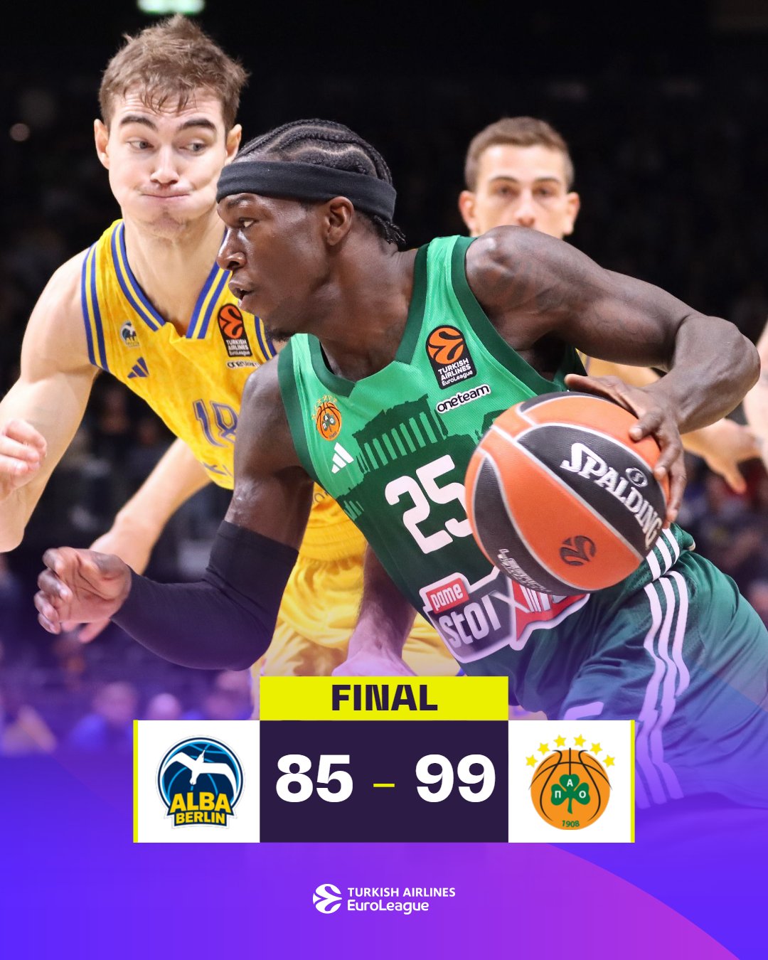 Ο κόσμος έστηνε πάρτι στην εξέδρα της «Mercedes Benz Arena» καθώς περισσότεροι από 2.000 φίλοι του Παναθηναϊκού έδιναν δυναμικό «παρών» στο Βερολίνο και μέσα στις τέσσερις γραμμές του παρκέ, οι «πράσινοι» κυριαρχούσαν απέναντι στην Άλμπα φτάνοντας σε μια μεγάλη νίκη την οποία και συνδύασαν με πειστική εμφάνιση στο πρώτο ημίχρονο. Όταν και είχαν εξωφρενικά ποσοστά ευστοχίας με 22/29 εντός παιδιάς!