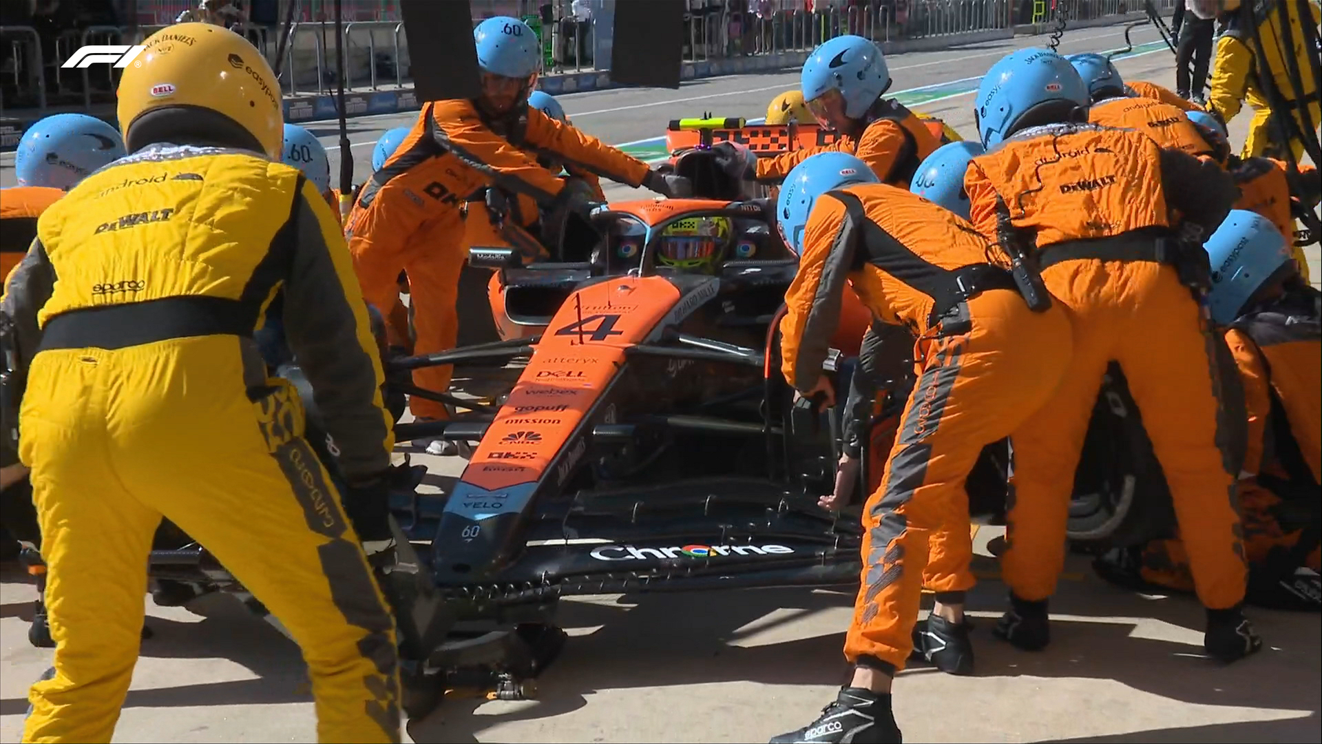 Με τα φρέσκα ελαστικά στο μονοθέσιό του, ο Φερστάπεν άρχισε να γράφει ταχύτερους γύρους και να πλησιάζει τον Νόρις. Οι δυο τους είχαν κάνει διαφορετική επιλογή ελαστικών, με τον Φερστάπεν να έχει προτιμήσει τα μεσαία ενώ ο Νόρις είχε βάλει τα σκληρά.