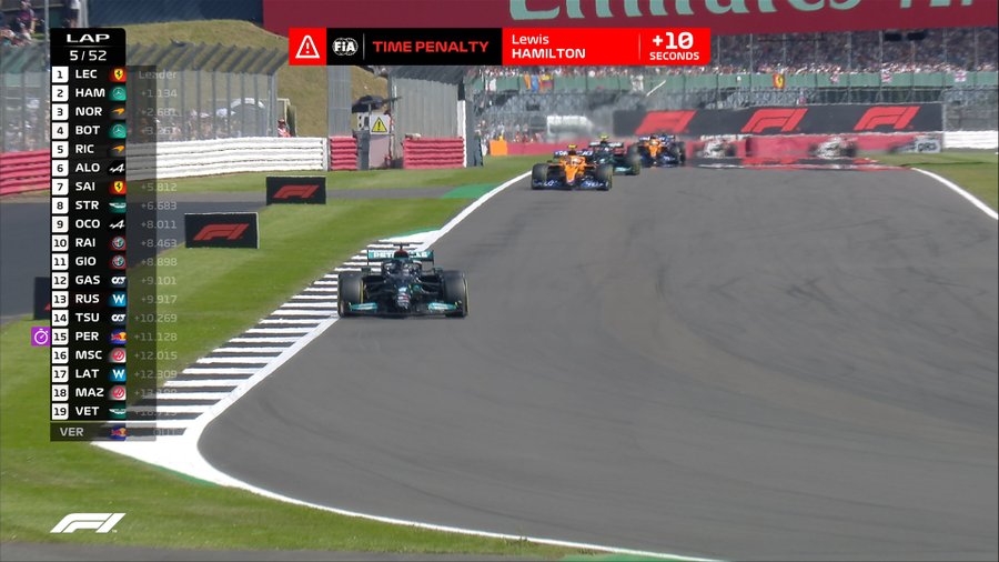 Εκείνη τη χρονική στιγμή βγήκε και το πόρισμα των αγωνοδικών για το συμβάν Hamilton-Verstappen, με τον Hamilton να δέχεται 10 δευτερόλεπτα ποινής. Τα πράγματα έδειχναν να μην πηγαίνουν πολύ καλά για τον Βρετανό, καθώς έβλεπε τη διαφορά του με τον Leclerc να παραμένει στα 1,5 δευτερόλεπτα περίπου, εκτός ζώνης DRS.