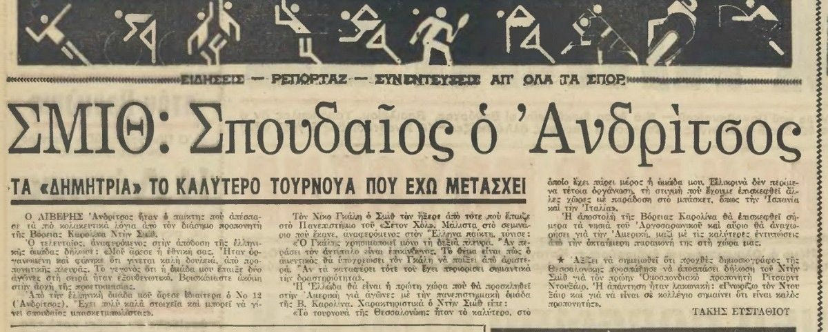 Μάθαμε τότε τα καθέκαστα κι όταν η ΕΟΚ ανακοίνωσε τη συμμετοχή των Tar Heels στα “Δημήτρια” ούτε που πέρασε από το μυαλό μου να λείψω αυτό το Τουρνουά.
