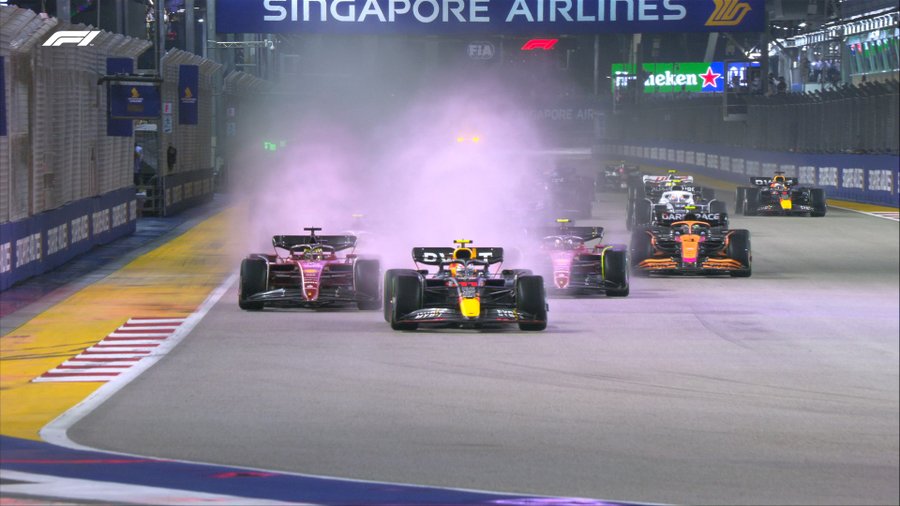 Το Grand Prix Σιγκαπούρης ήταν ένας αγώνας που ξεκίνησε βρεγμένος και τελειώσε σε στεγνή πίστα και είχε για πρωταγωνιστή τον Σέρχιο Πέρεζ, ο οποίος παρά την αμφισβήτηση που δέχεται τον τελευταίο καιρό έκανε εξαιρετικό αγώνα για να φτάσει στη δεύτερη φετινή του νίκη. Ο Μεξικανός της Red Bull Racing άντεξε στην πίεση του Σαρλ Λεκλέρ της Scuderia Ferrari και πήρε επάξια τη νίκη. Ο Μονεγάσκος πάλεψε για τη νίκη στο τελευταίο, στεγνό κομμάτι του αγώνα αλλά δεν τα κατάφερε. Ο Κάρλος Σάινθ με την άλλη Ferrari τερμάτισε 3ος και ανέβηκε στο βάθρο. Ο Φερστάπεν πήρε την 7η θέση, ύστερα από ένα από σπάνια λάθη του.