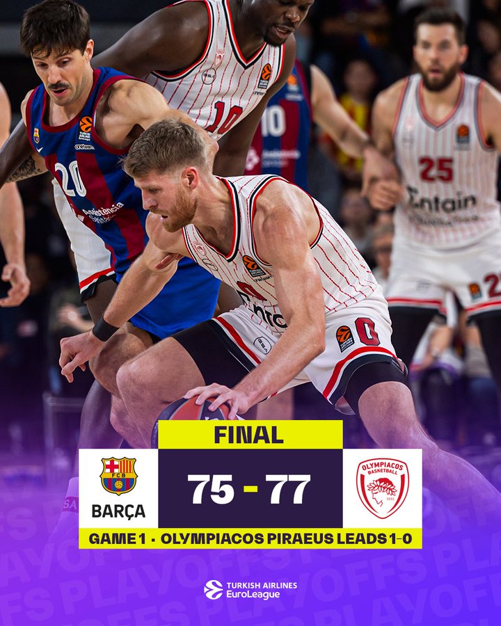 Ένας σπουδαίος Ολυμπιακός με πολλές λύσεις πήρε τη νίκη στο Palau επί της Μπαρτσελόνα με 75-77 και άνοιξε το σκορ στη σειρά των play off παίρνοντας παράλληλα το πλεονέκτημα της έδρας στα δικά του χέρια. Οι παίκτες του Γιώργου Μπαρτζώκα ακολούθησαν πιστά το πλάνο τους στο διάστημα της πίεσης των γηπεδούχων και βρίσκοντας σπουδαία καλάθια σε κρίσιμα διαστήματα πανηγύρισαν τη νίκη.