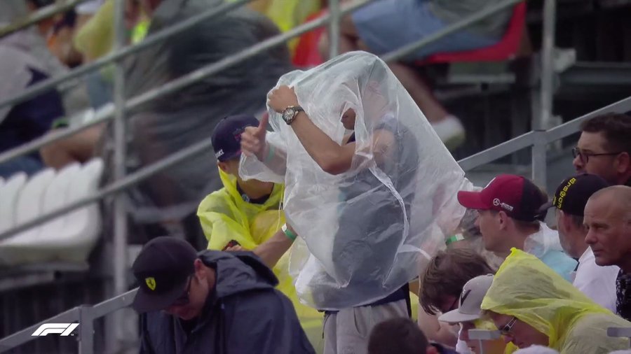 Στον γύρο σχηματισμού όμως, πολλοί οδηγοί μπήκαν κατευθείαν στα pits για να βάλουν στεγνά ελαστικά την ώρα που μόνο ο Hamilton έμεινε έξω με τη μέση, κάνοντας εκκίνηση μόνος του, σε ένα μοναδικό φαινόμενο!