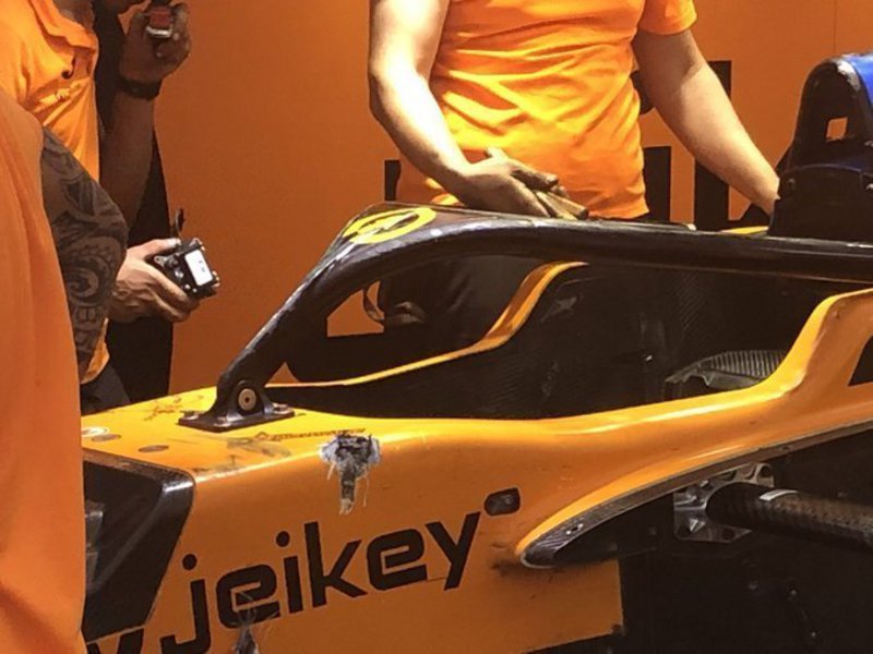 Ο εμπρός δεξιός τροχός του μονοθεσίου του Alonso συγκρούστηκε με το Halo του Leclerc, αφήνοντας εμφανές σημάδι πάνω σε αυτό, αποδεικνύοντας ότι το Halo κάνει καλά τη δουλειά του.