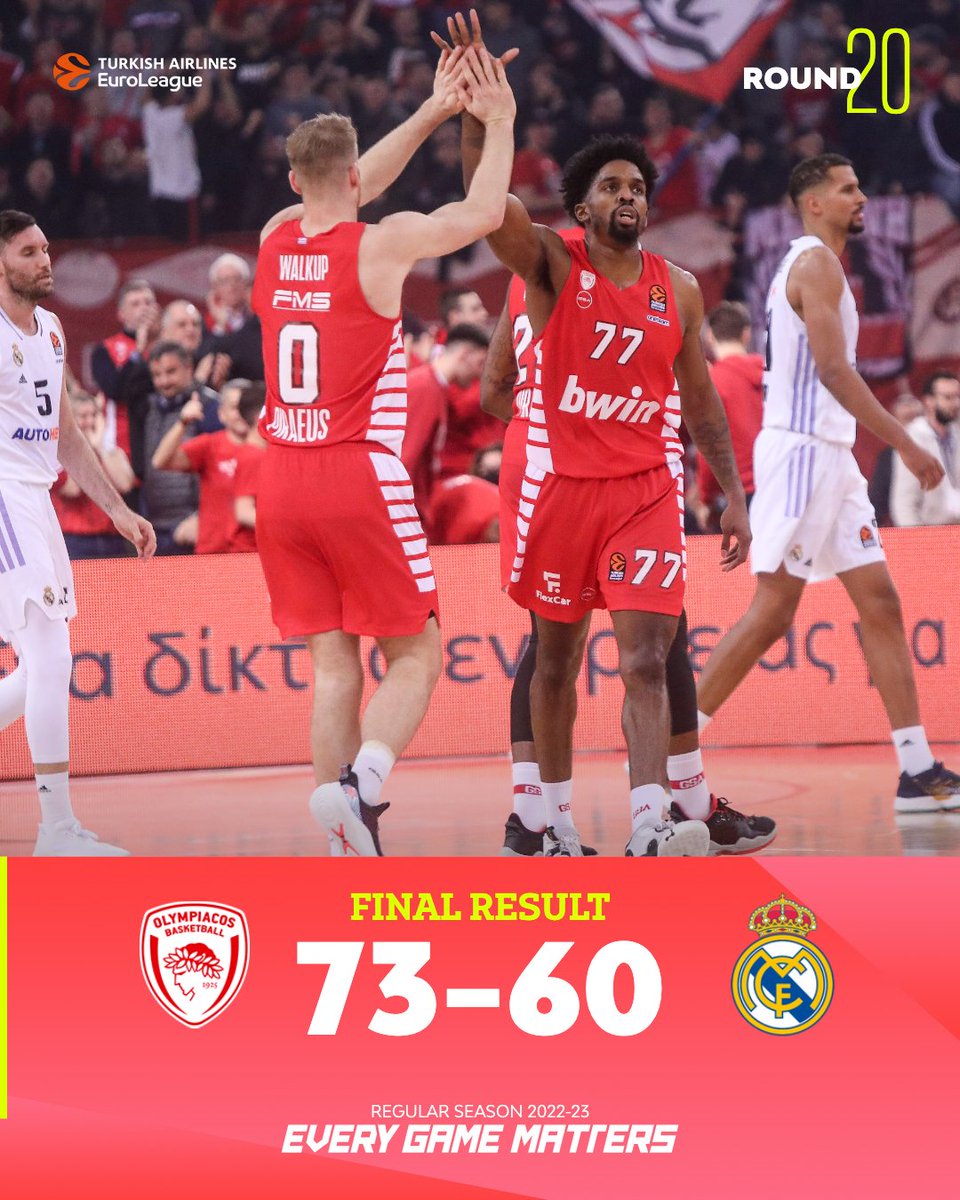 ΤΟ ΣΤΑΤΙΣΤΙΚΟ ΤΟΥ ΜΑΤΣ: Οι Πειραιώτες κυριάρχησε στα ριμπάουντ (45-36), αλλά κυρίως με την τρομερή του άμυνα υποχρέωσε την Ρεάλ να έχει 3/25 τρίποντα.