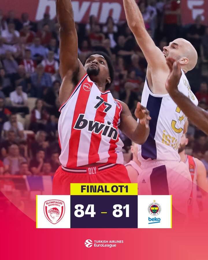 Ολυμπιακός και Φενέρμπαχτσε έπαιξαν για τη νίκη, αλλά οι «ερυθρόλευκοι» ήταν αυτοί που την κατέκτησαν με 84-81 (κ.α 69-69) ακόμη κι αν χρειάστηκαν ένα επιπλέον πεντάλεπτο. Οι φιλοξενούμενοι είχαν αγκαλιά τη νίκη, αλλά υπολόγιζαν χωρίς τον Αϊζάια Κάνααν ο οποίος με 9 σερί πόντους και ένα κρίσιμο κλέψιμο ανέτρεψε την κατάσταση και χάρισε τη νίκη στην ομάδα του. Οι παίκτες του Γιώργου Μπαρτζώκα τερμάτισαν στην 5η θέση και στα play off καλούνται να αντιμετωπίσουν την Μπαρτσελόνα με μειονέκτημα έδρας προκειμένου να συμμετέχουν στο Final Four του Βερολίνου. Η Φενέρ θα βρουν μπροστά τους τη Μονακό.