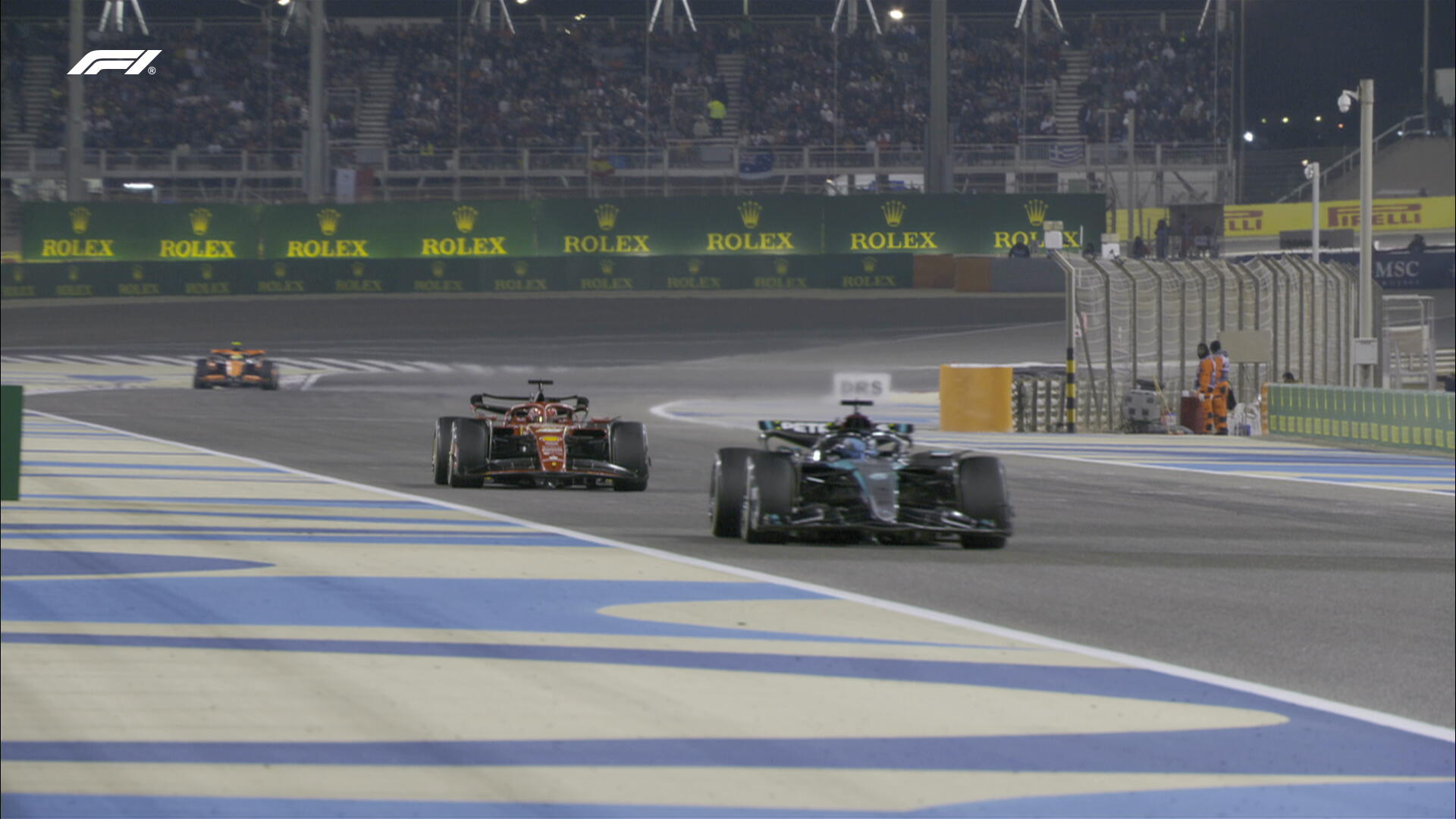 Πιο πίσω, ο Τζορτζ Ράσελ ήταν 3ος, μπροστά από τον Σέρχιο Πέρεζ και τον Κάρλος Σάινθ, με τον Αλόνσο και τις δύο McLaren των Νόρις και Πιάστρι να ακολουθούν και τους Χάμιλτον και Τσουνόντα να κλείνουν τη 10άδα.