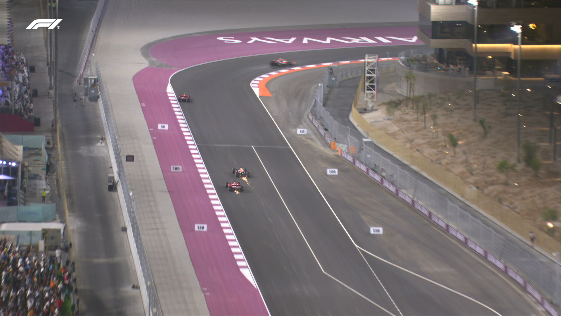 Στο τέλος του πρώτου γύρου βγήκε το Αυτοκίνητο Ασφαλείας, γιατί το μονοθέσιο του Λίαμ Λόσον βγήκε στην αμμοπαγίδα και έπρεπε να απομακρυνθεί. Ο Αυτοκίνητο Ασφαλρίας έμεινε μόνο ένα γύρο στην πίστα και στην επανεκκίνηση ο Τζορτζ Ράσελ βρήκε την ευκαιρία και με μια ωραία κίνηση πέρασε τον Πιάστρι και ανέβηκε στην πρώτη θέση.