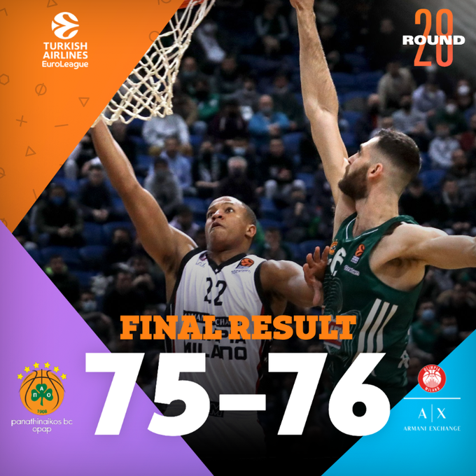 Ο Κάιλ Χάινς με ένα επιθετικό ριμπάουντ και 1/2 βολές στα 2” πριν από το τέλος, έμελλε να χαρίσει τη νίκη στην Αρμάνι Μιλάνο μέσα στο ΟΑΚΑ με 76-75 αν και ο Παναθηναϊκός πραγματοποίησε παλικαρίσια ανατροπή στα τελευταία λεπτά έχοντας βρεθεί και στο -13!