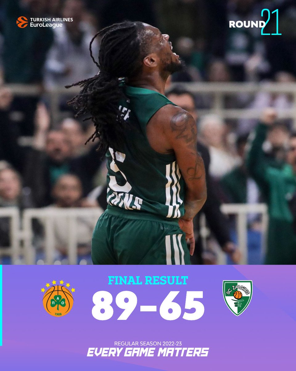 Τελικό σκορ: Παναθηναϊκός – Ζάλγκιρις 89-65.