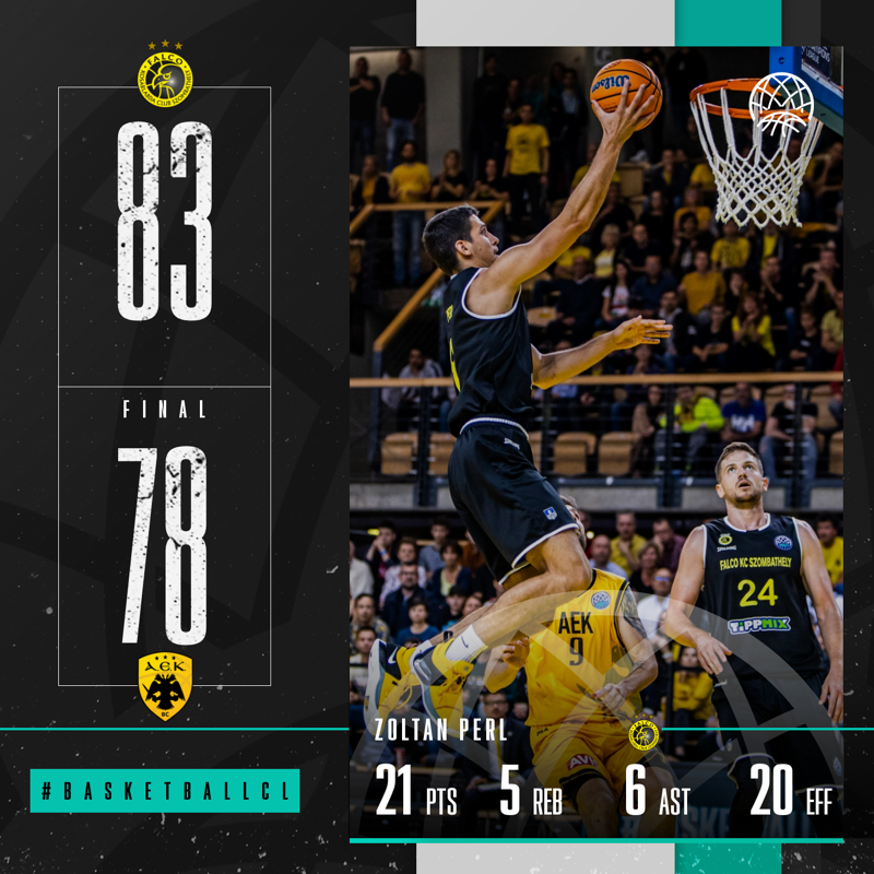 Και από εκείνο το σημείο, υποχρεώθηκε να κυνηγάει στο σκορ. Η Φάλκο βρήκε πόντους απ’ τον κορυφαίο στο παρκέ, Ζόλταν Περλ. Και η ΑΕΚ κρατιόταν με νύχια και με δόντια, χάρη στις εύστοχες βολές και τις λύσεις που έδωσαν οι Κολόμ, Παππάς και Γκρίφιν (80-76 με 2/3 βολές του Ανγκόλα 25 δεύτερα πριν το τέλος).