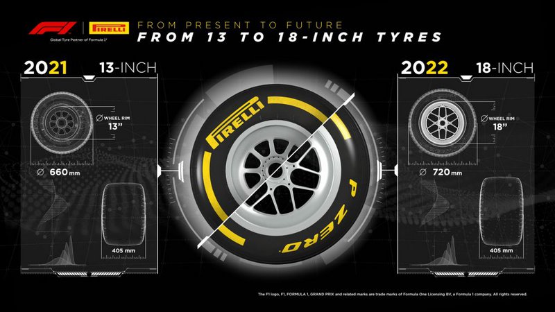 Η μεγαλύτερη και πιο προφανής αλλαγή είναι η μετάβαση από τα ελαστικά 13 ιντσών σε αυτά των 18 ιντσών. Είναι η πρώτη φορά μετά τη δεκαετία του ’60 που οι τροχοί της Formula 1 δεν θα έχουν διάμετρο 13 ιντσών, σε μία κίνηση που -κατά την Pirelli- θα κάνει το ελαστικό λιγότερο ευαίσθητο στις αλλαγές θερμοκρασίας, επιτρέποντας στους οδηγούς να πιέζουν περισσότερο με το εκάστοτε σετ.