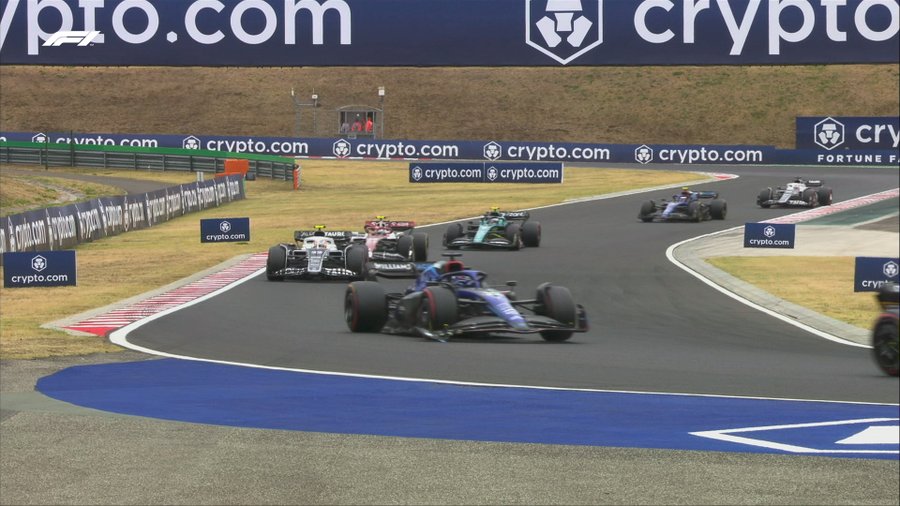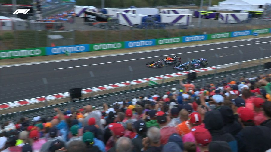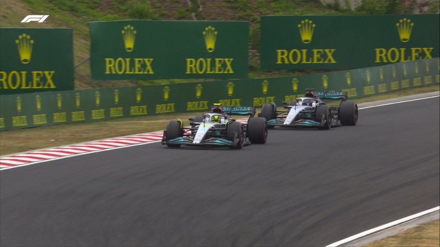 Τα μονοθέσια πήραν τις θέσεις τους στην εκκίνηση -και εκείνο του Γκασλί στο pit lane- με σαφή την απειλή της βροχής πάνω από το Χανκαρόρινγκ. Η πίστα όμως ήταν στεγνή και όλοι ξεκίνησαν με σλικ ελαστικά – μαλακά για τον Ράσελ, τις McLaren και τις Red Bull και μεσαία για τους υπόλοιπους της πρώτης 10άδας, δηλαδή τις Ferrari, τις Alpine και τον Χάμιλτον.